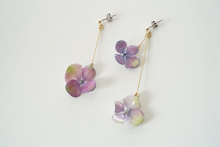 自然の花を樹脂加工して製作したピアス、